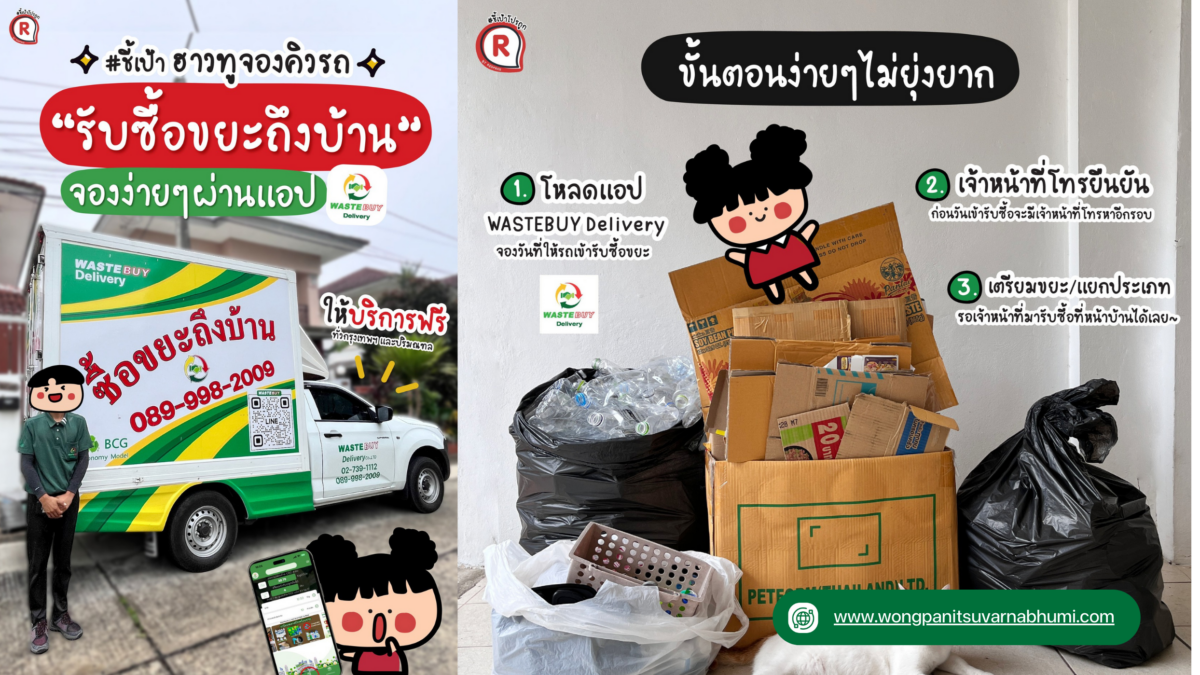 ตุลาคม 29, 2024สะดวกสุด! บริการฟรี "รับซื้อขยะรีไซเคิลถึงบ้าน" กับ Waste Buy Delivery!